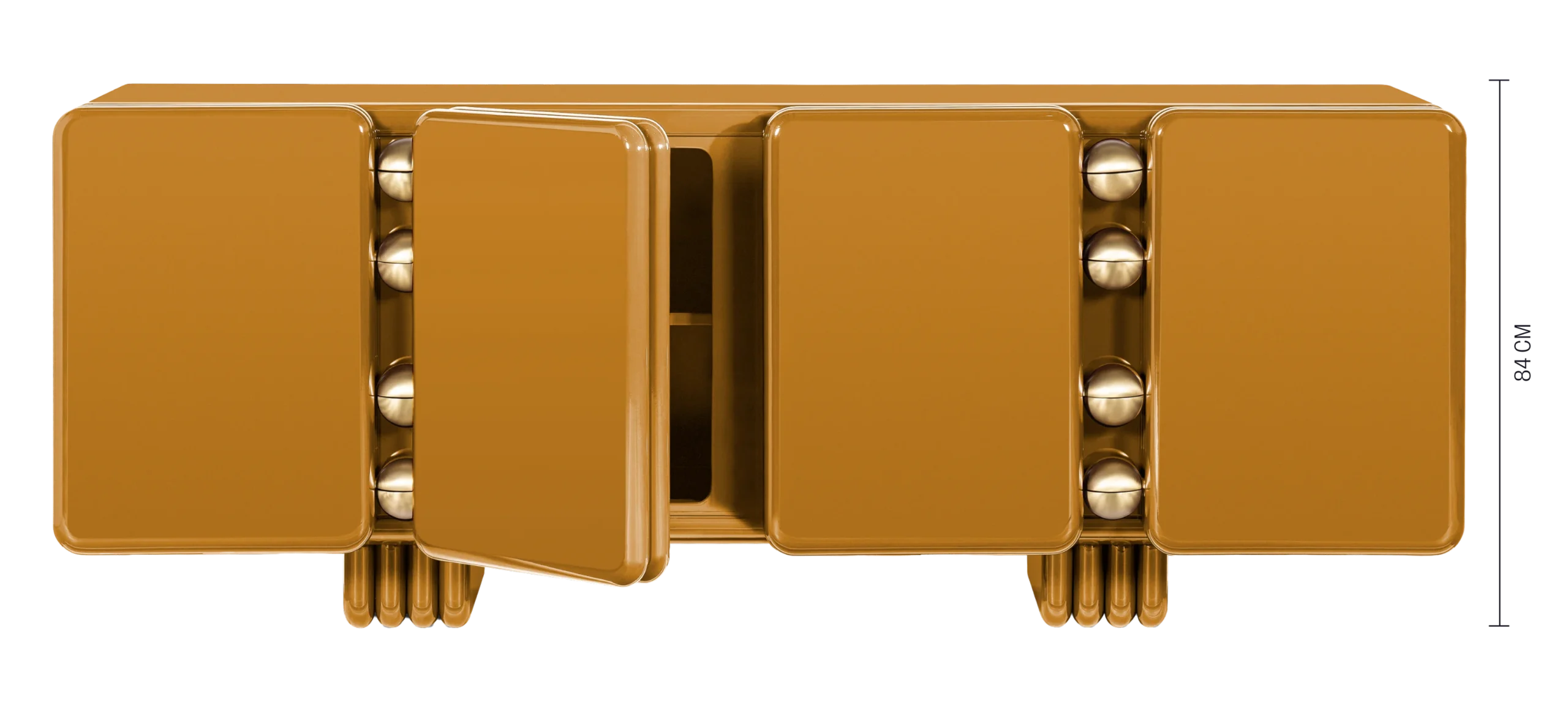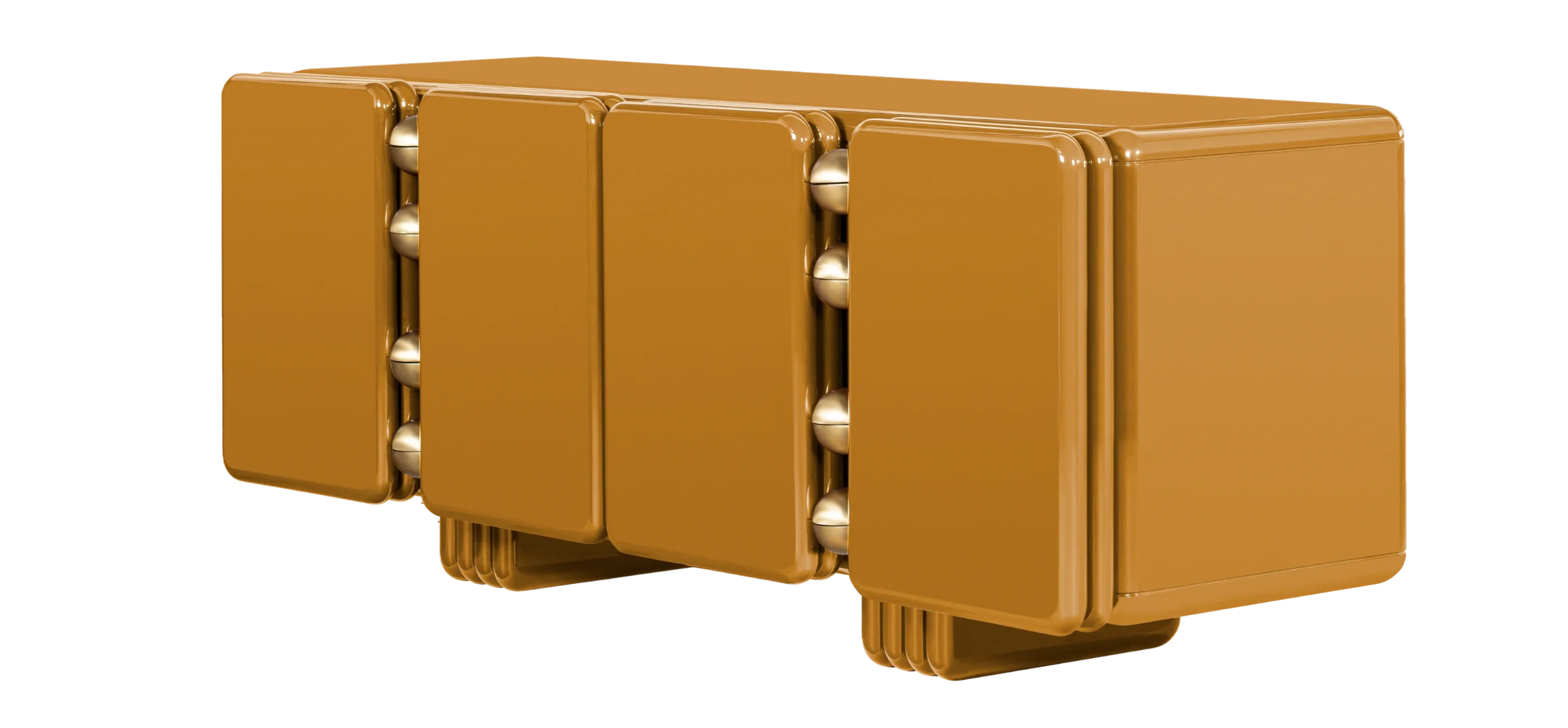 A bold fusion of modern design. A luxury sideboard with bold, sweeping curves, brushed-brass hinges and perfectly lacquered finishes. Crafted with artisanal precision, it combines modern design and bold elegance, standing as a true statement piece.